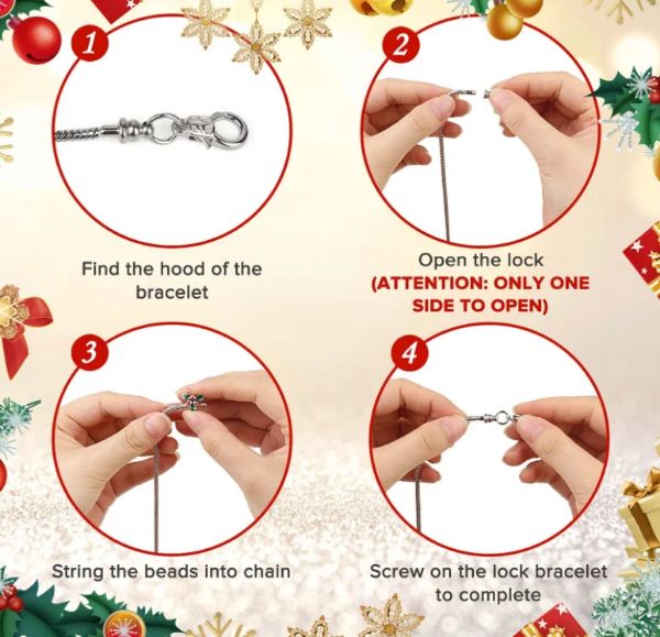 Božični adventni koledar, ki vključuje 22 obeskov in 2 zapestnici, s čimer lahko ustvarite dve očarljivi zapestnici.