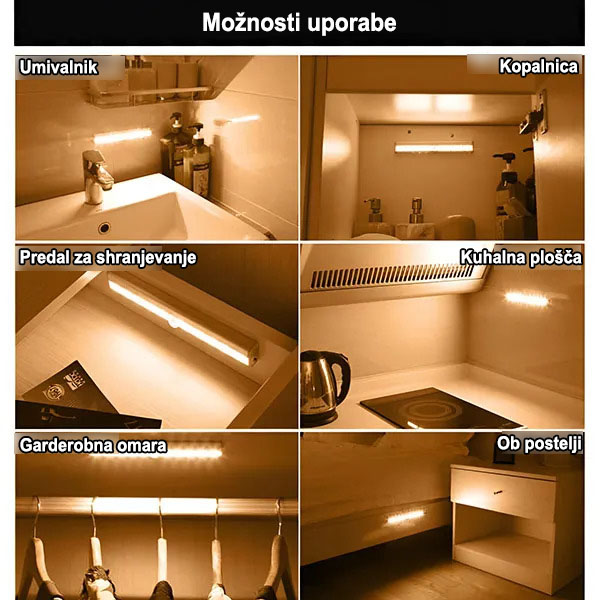 Olajšajte si oblačenje tako, da to lučko namestite v omaro ali garderobno omaro. Ko odprete vrata, se samodejno prižge in vam pomaga najti oblačila, ne da bi se trudili iskati v temi.